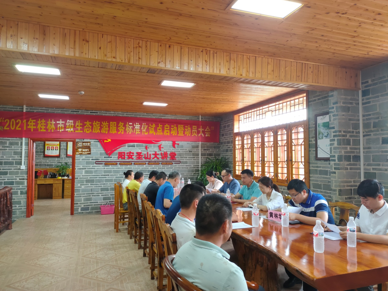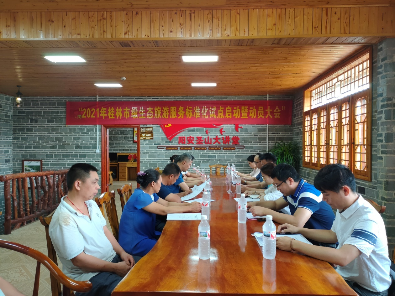 會(huì)上,平樂縣市場監(jiān)督管理局質(zhì)量計(jì)量標(biāo)準(zhǔn)化股翟俊斌股長宣讀了2021年桂林市級(jí)標(biāo)準(zhǔn)化試點(diǎn)的立項(xiàng)批文。桂林市市場監(jiān)管局標(biāo)準(zhǔn)化科蔣曉龍主任科員就試點(diǎn)創(chuàng)建工作對(duì)第三方技術(shù)服務(wù)公司、平樂縣市場監(jiān)管局和平樂榮家圣山二仙巖生態(tài)旅游開發(fā)有限公司分別提出了要求和希望,并指出創(chuàng)建服務(wù)業(yè)標(biāo)準(zhǔn)化試點(diǎn),是提升生態(tài)旅游服務(wù)質(zhì)量和游客滿意度的有效手段,對(duì)打造企業(yè)服務(wù)品牌具有重大意義,同時(shí)要求全體員工要嚴(yán)格按照試點(diǎn)創(chuàng)建的要求,在桂林市、平樂縣市場監(jiān)管局以及我司的指導(dǎo)下,各部門通力合作、密切配合、各司其職,高標(biāo)準(zhǔn)高質(zhì)量完成服務(wù)業(yè)標(biāo)準(zhǔn)化試點(diǎn)的創(chuàng)建工作。我司總經(jīng)理黃林華在詳細(xì)解讀《桂林市市級(jí)服務(wù)業(yè)標(biāo)準(zhǔn)化試點(diǎn)評(píng)分表》的同時(shí),就如何做好平樂榮家圣山二仙巖生態(tài)旅游開發(fā)有限公司生態(tài)旅游服務(wù)標(biāo)準(zhǔn)化試點(diǎn)進(jìn)行了經(jīng)驗(yàn)介紹,并結(jié)合生態(tài)旅游服務(wù)的實(shí)際情況就如何編制試點(diǎn)工作方案、建立健全平樂榮家圣山二仙巖生態(tài)旅游開發(fā)有限公司生態(tài)旅游服務(wù)標(biāo)準(zhǔn)體系等給出了具體意見和建議。