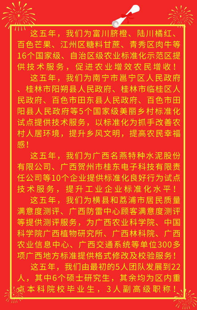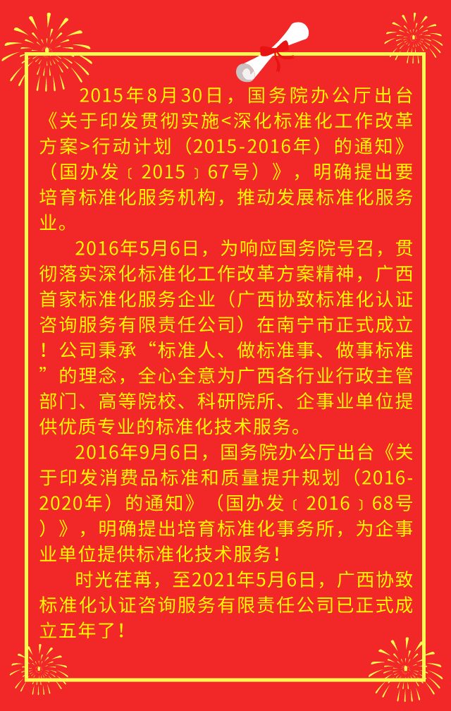 廣西協(xié)致標(biāo)準(zhǔn)化認(rèn)證咨詢服務(wù)有限責(zé)任公司五周年寄語:在服務(wù)和創(chuàng)新中茁壯成長(zhǎng)