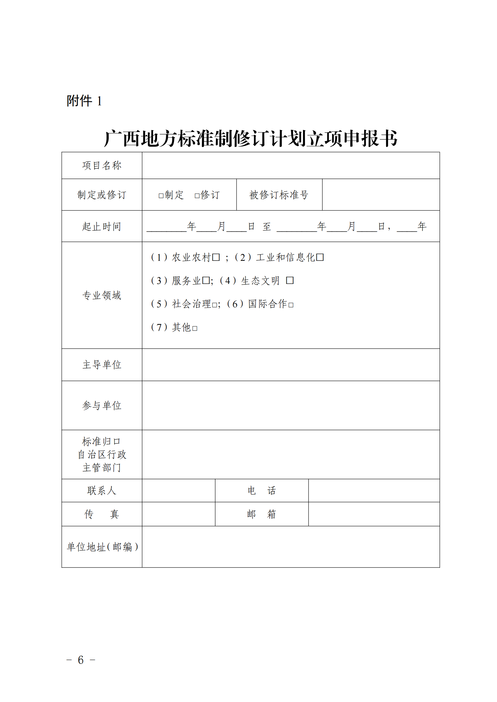 附件1:廣西地方標(biāo)準(zhǔn)制修訂計(jì)劃立項(xiàng)申報(bào)書